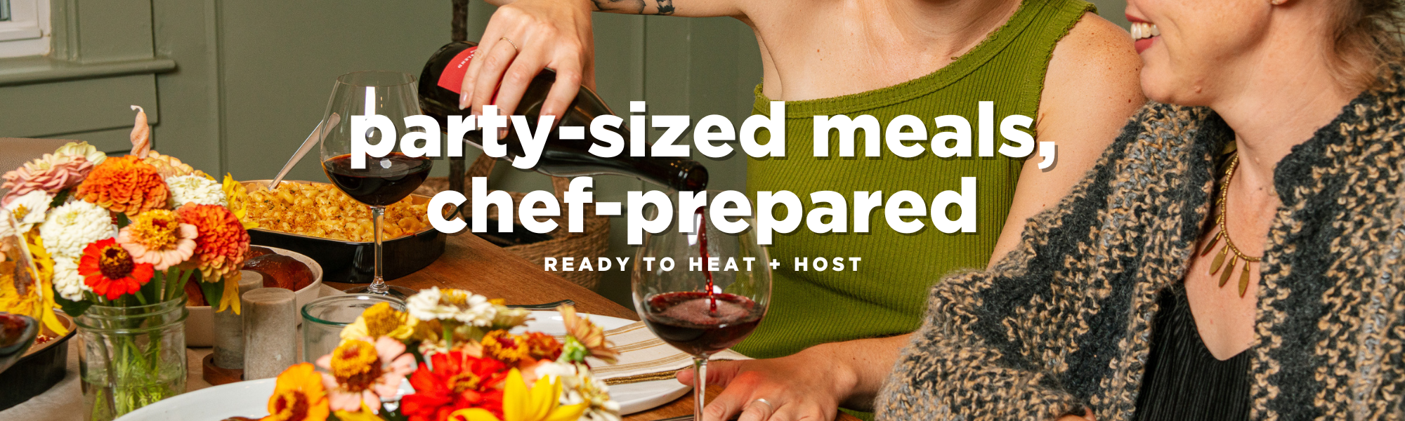 Our chef-prepared party pans take the stress out of feeding a crowd. Choose from our most-loved dishes, generously portioned and ready to warm in your oven. Whether you're planning a family gathering, dinner party, or celebrating a special occasion, we've got the food covered so you can focus on the fun.
